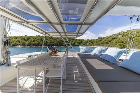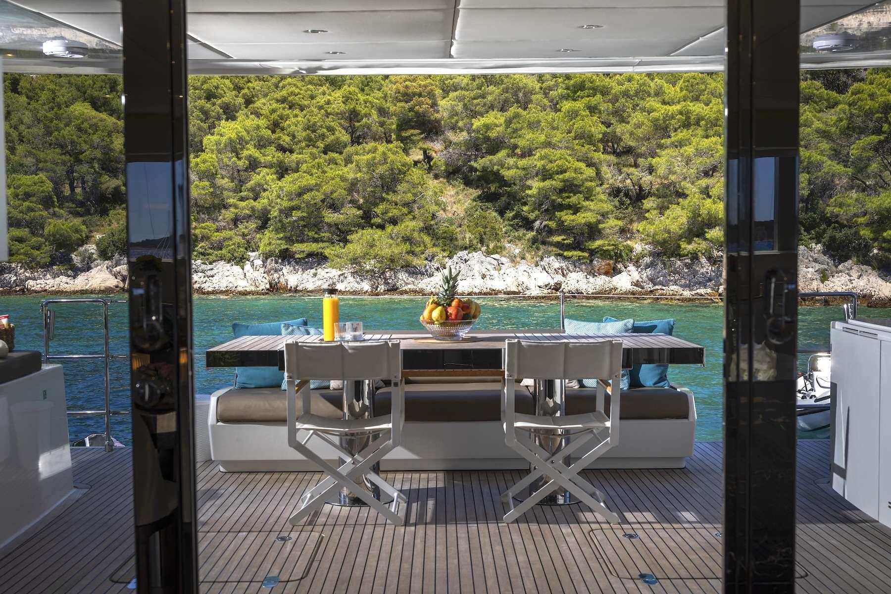 Extra equipment: A/C, generator, water maker electric genoa winch, gennaker, full teak decking, hydraulic gangway, electric toilets, ice maker, LED-TV 55, Fusion Bluetooth radio CD/MP3-player, BOSE Hi-Fi sound system, cockpit and flybridge speakers, inverter, additional cockpit and flybridge fridge, dishwasher, washing machine and dryer, wine cooler, microwave oven, fly deck with cushions and sun mattresses, BBQ grill, fishing rod holder, underwater lights, hydraulic lifting swimming platform, stern/aft shower with hot/cold water, and a variety of fishing equipment and water toys.