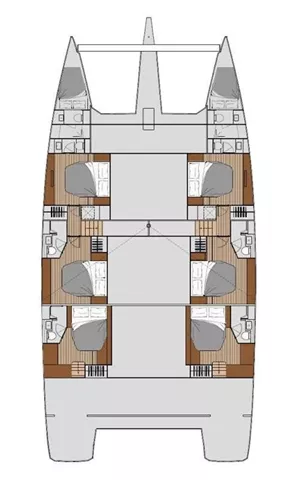 Encore has 5 equal ensuite queen sized cabins accommodating up to 10 guests.
