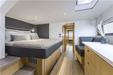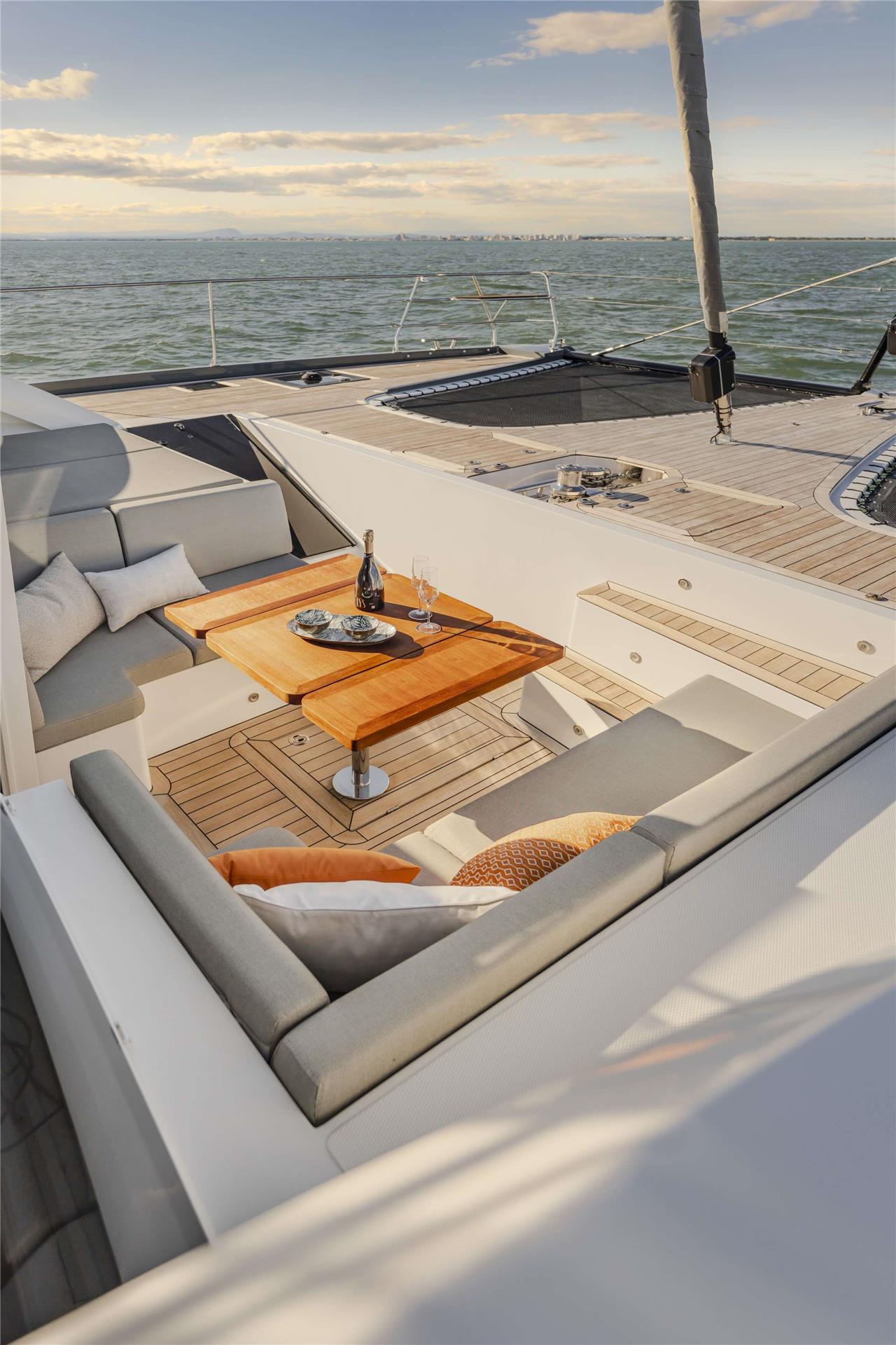 Stretching nearly 60 feet, the Privilège Signature 580 offers both forward and aft cockpits, each designed for effortless relaxation. With its direct entry from the salon, the forward cockpit becomes an alternative private retreat.