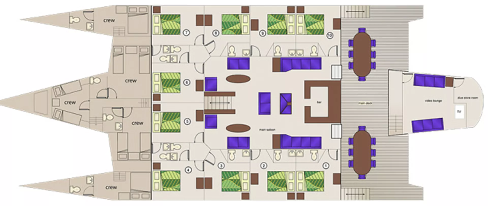 * There are ten double staterooms, each can be set up to suit your needs with a double bed or twins, side by side. Accommodation aboard Cuan Law is spacious and comfortable. You won't find cramped bunk beds aboard Cuan Law and you've got plenty of walking around space.