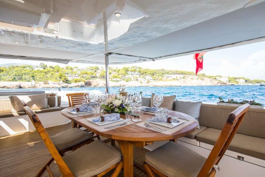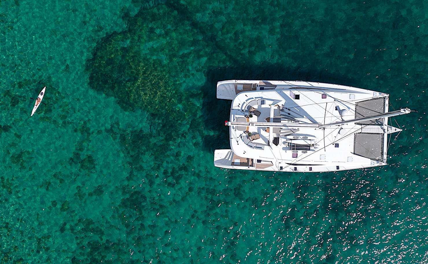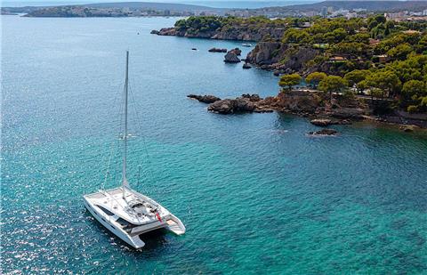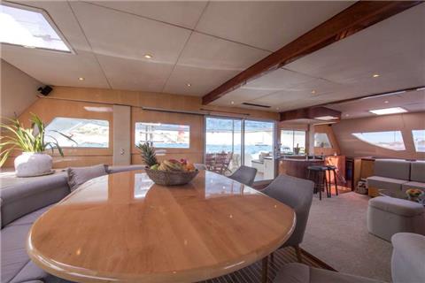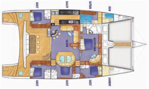 King's Ransom, a Silhouette 76 cat with a master full-width king suite, 3 queen suites, and a suite with either a queen or two twin berths.