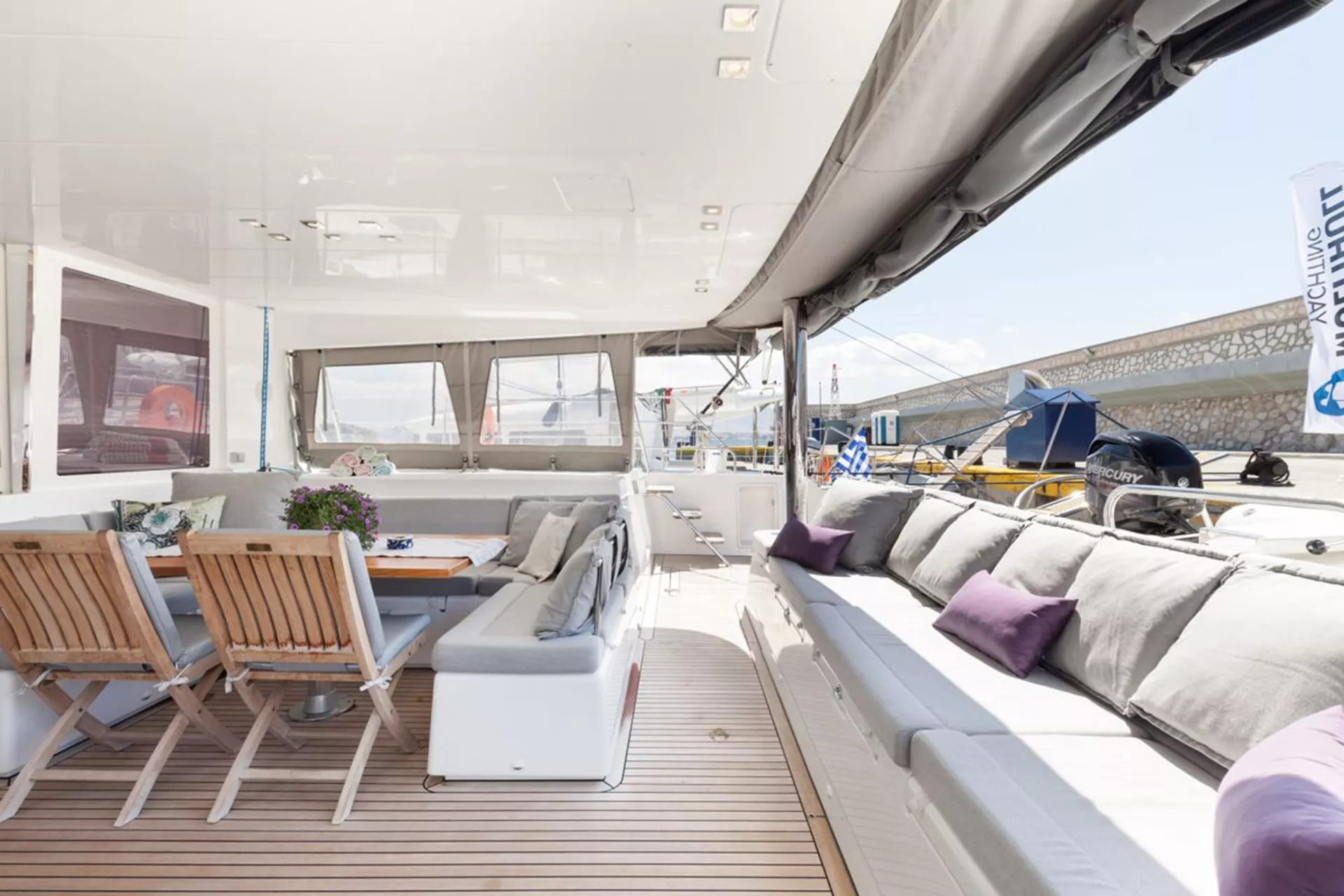� The cockpit is fully protected from the sun and sea spray and is on the same level as the galley
