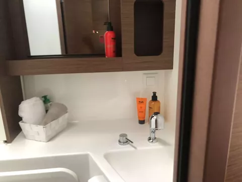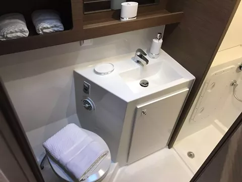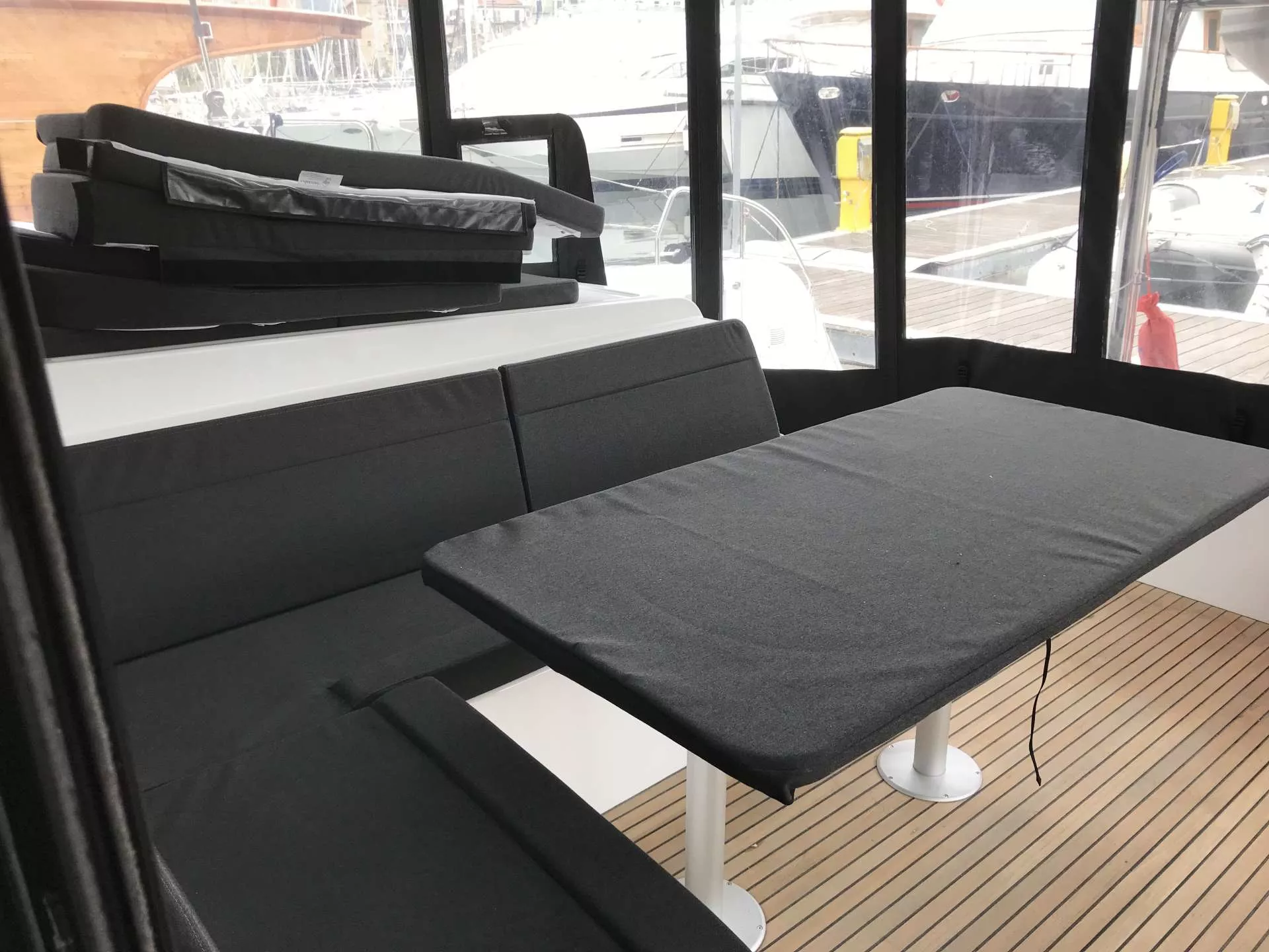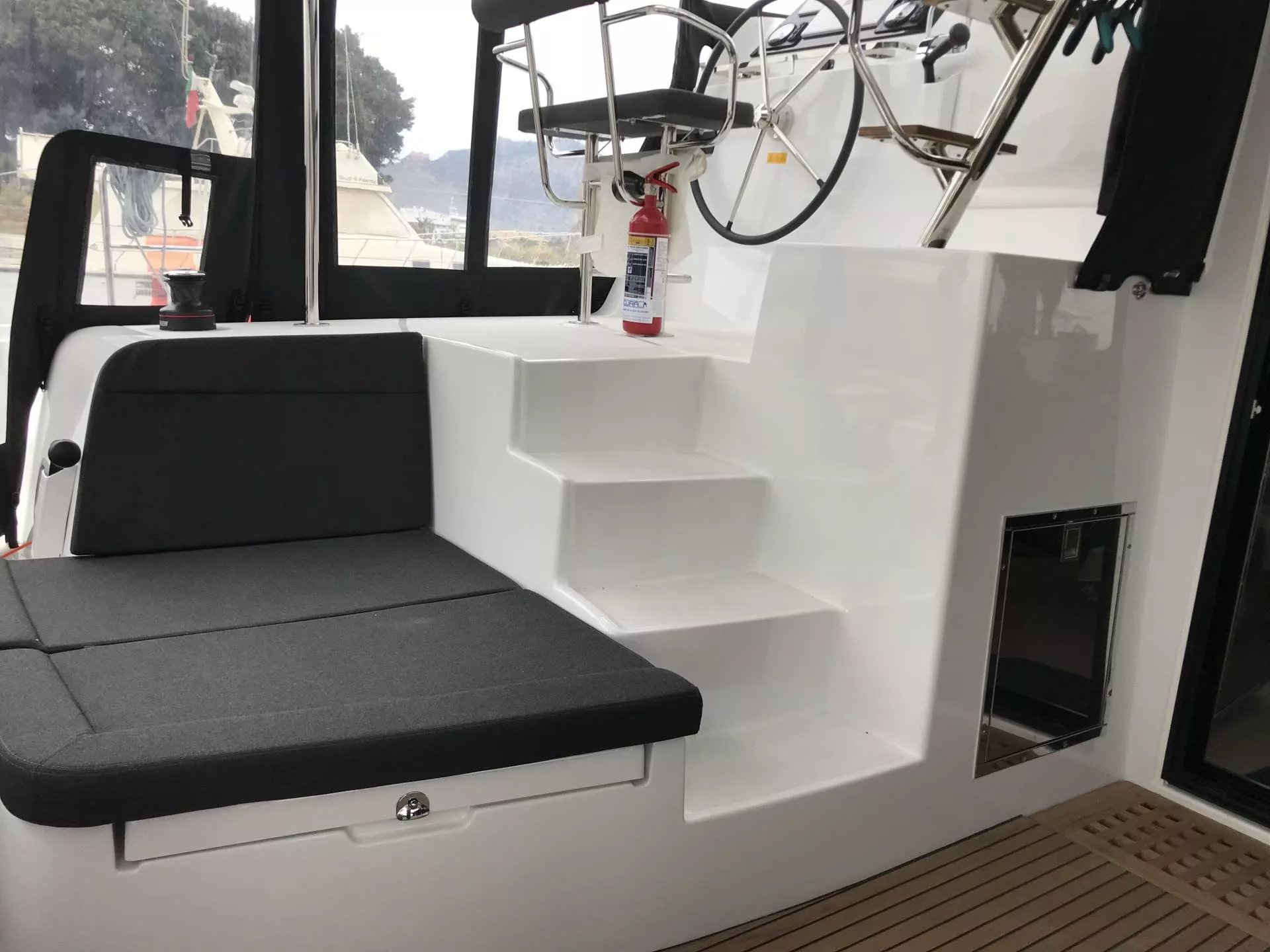 Microwave, cockpit floor in teak.