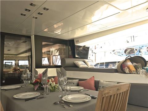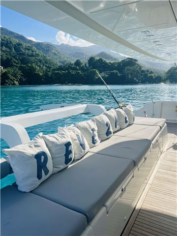 Large central panoramic saloon, a shaded aft cockpit and sheltered flybridge. The ocean view with its 50 shades of blue is an integral part of the decor, the perfect getaway.