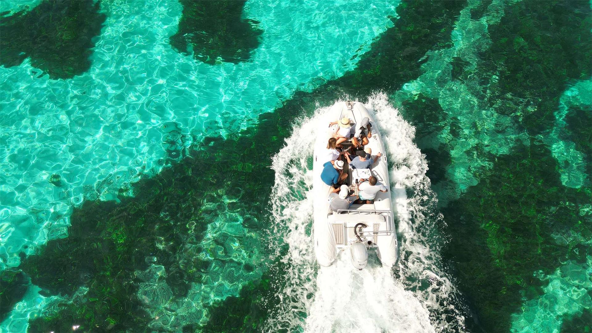 The rear skirts offer easy access to the boat and allow you to practice all water sports or simply to take a dip in the crystal clear water around your anchorage.