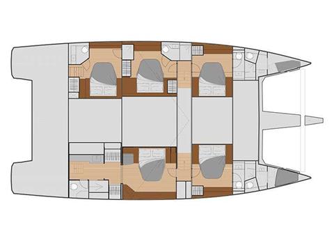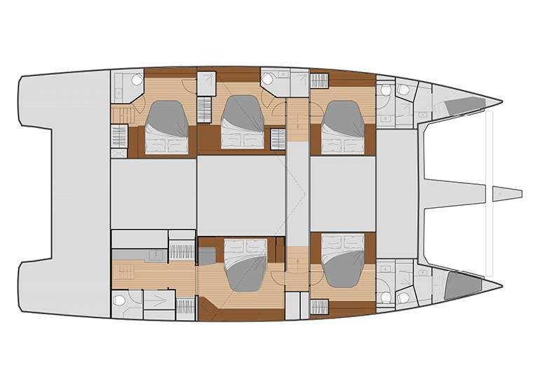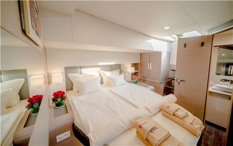 One master cabin with en suite bathroom and 4 queen bed cabins with private bathrooms