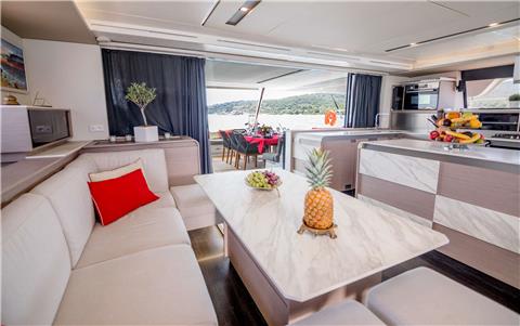 A flybridge with breathtaking dimensions... the largest in its category! Achieving the perfect blend of space and intimacy, S/Y ASTORIA will enchant you and inspire sailing experiences that bring friends or family together for unforgettable moments.