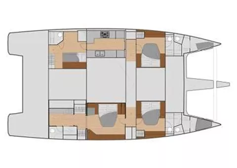 One master cabin (bed size 1,60m x 2,00m), 2 queen bed guest cabins (bed sizes 1,60m x 1,90m), one cabin with bunk beds (bed sizes: upper bed 0,80cm x 1,90m & lower bed 0,70cm x 1,87m) all with private bathrooms