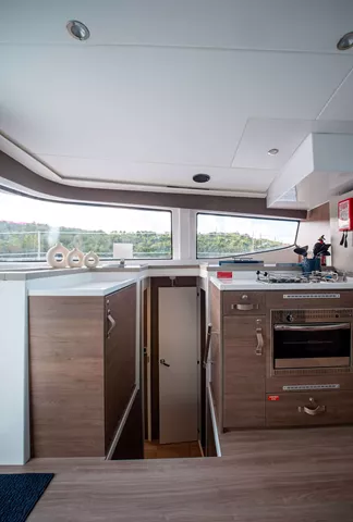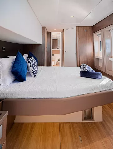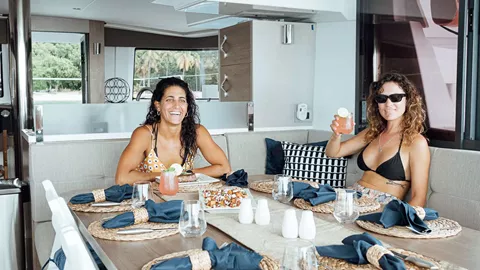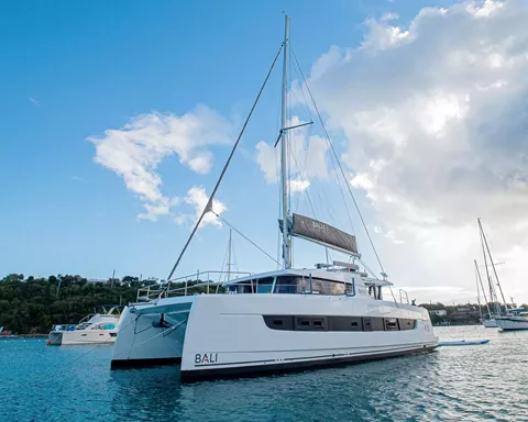 Bali catamarans are renowned for their exceptional blend of luxury, space, and performance, and this design further enhances that reputation. The standout feature is the "Bali garage door," which allows the aft wall of the yacht to retract, creating an uninterrupted vista of your surroundings. This design element also facilitates indoor/outdoor dining and invites the refreshing Caribbean breeze to flow freely through the yacht.