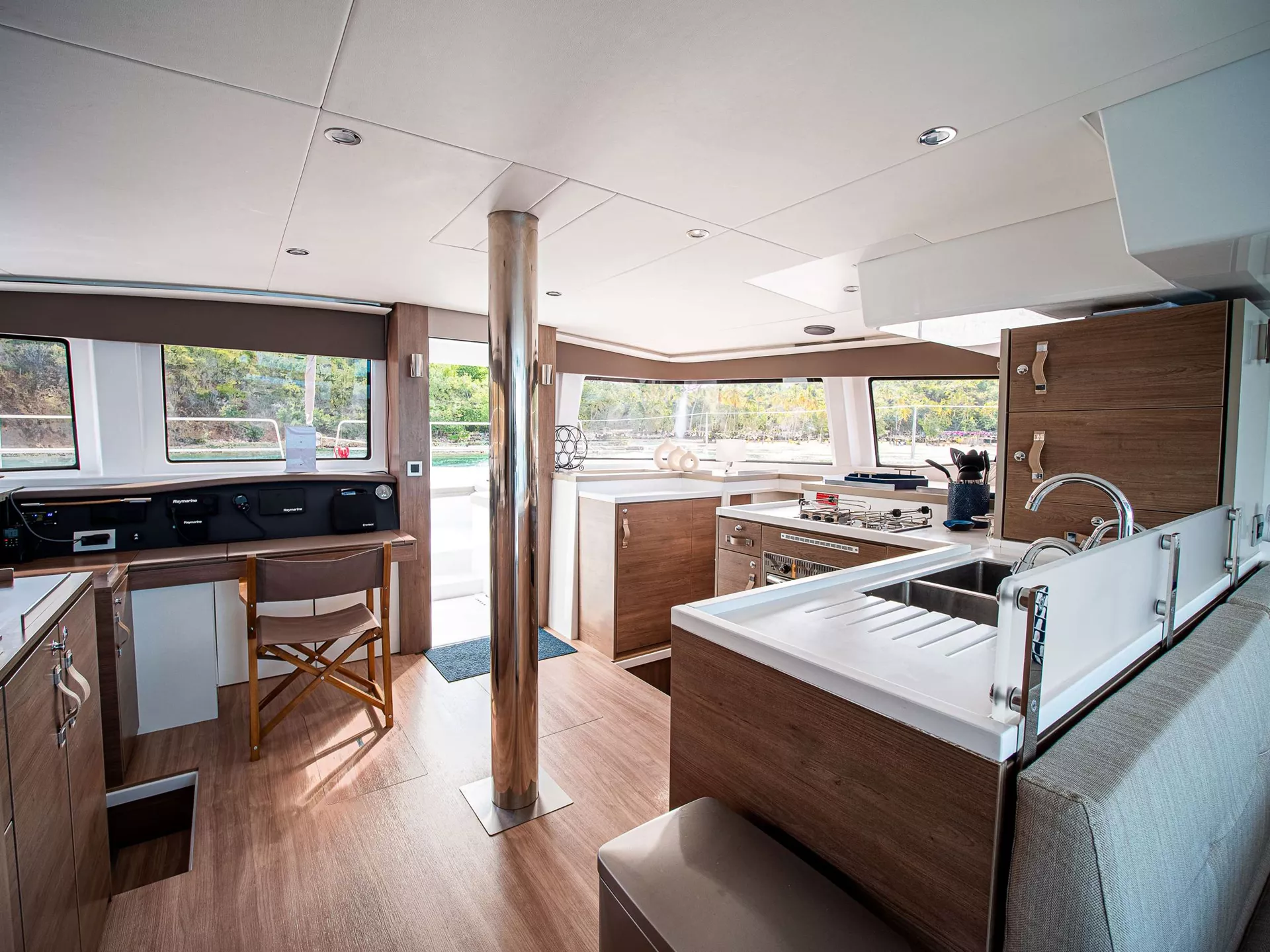 Main deck has a bright and airy salon with direct access to the forward lounge area.