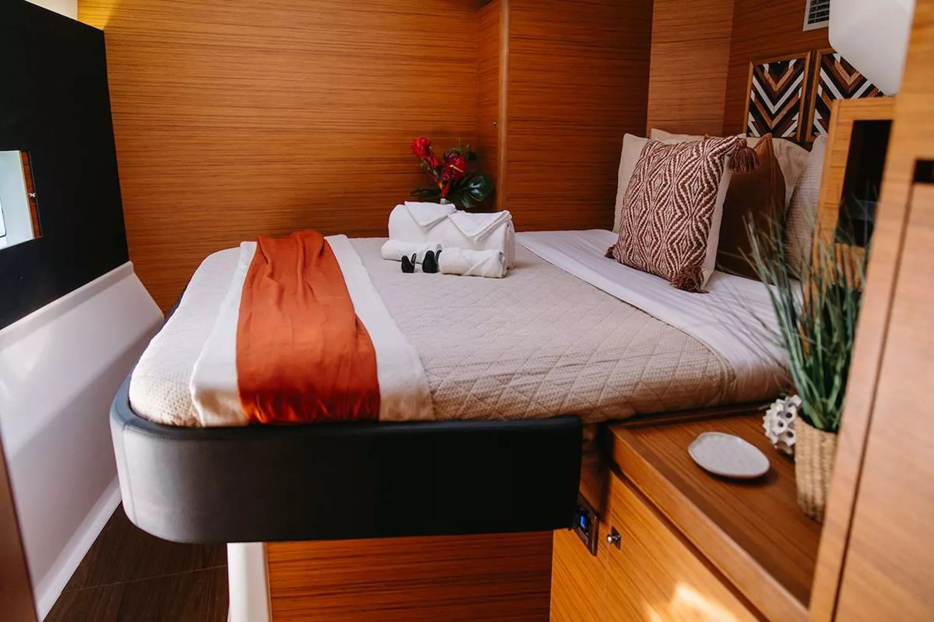 This new model of Catamaran has an abundance of interior and exterior space with multiple sunbathing decks and an open plan layout. Aquanimity is ideal for relaxing with privacy and socialising on board.