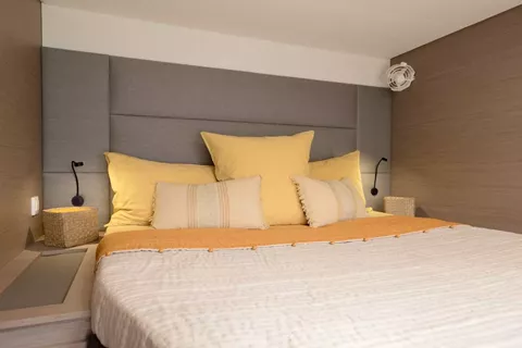 Beyond has 1 Owner’s suite and 4 VIP double cabins, one of which is reserved for crew. All cabins have en-suite bathrooms. Guests will find that the decor reflects neutral colours and natural textures.