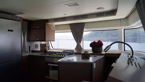 Lagoon 52F: Introducing our Lagoon 52, offered for crewed catamaran charter in Greece, in the Ionian Sea. Our experienced and friendly crew promise to offer you the best sailing experience. Equipped with a hydraulic platform that makes sailing available for everyone. Innovation and luxury all in one yacht. She has five double cabins all with ensuite facilities to accommodate 10 guests in comfort, perfect to accommodate five couples. Blue Velvet can have up to 12 guests, as there is an extra cabin with upper and lower bunk beds (ideal for two children or young adults, again with ensuite facilities). Also loved by families with children, who enjoy the spacious front and flybridge area. The available water toys will bring fun to another level. Get on board Blue Velvet and enjoy a different type of sailing & comfort experience in Ionian Sea.