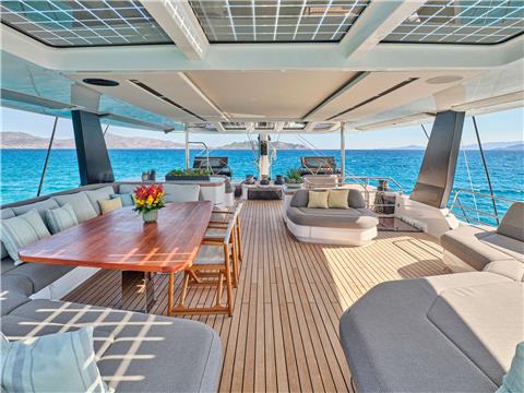 Step aboard the NEW Fountaine Pajot 80 S/Y ALOIA 80 and experience the epitome of luxury in a catamaran. With its spacious flybridge offering an authentic ocean terrace and a forward cockpit with ample seating, this vessel is designed to provide the ultimate in relaxation and enjoyment. Whether you want to feel the thrill of sailing or simply unwind on the decadent lounges and sunbathing beds, S/Y ALOIA 80 has it all.