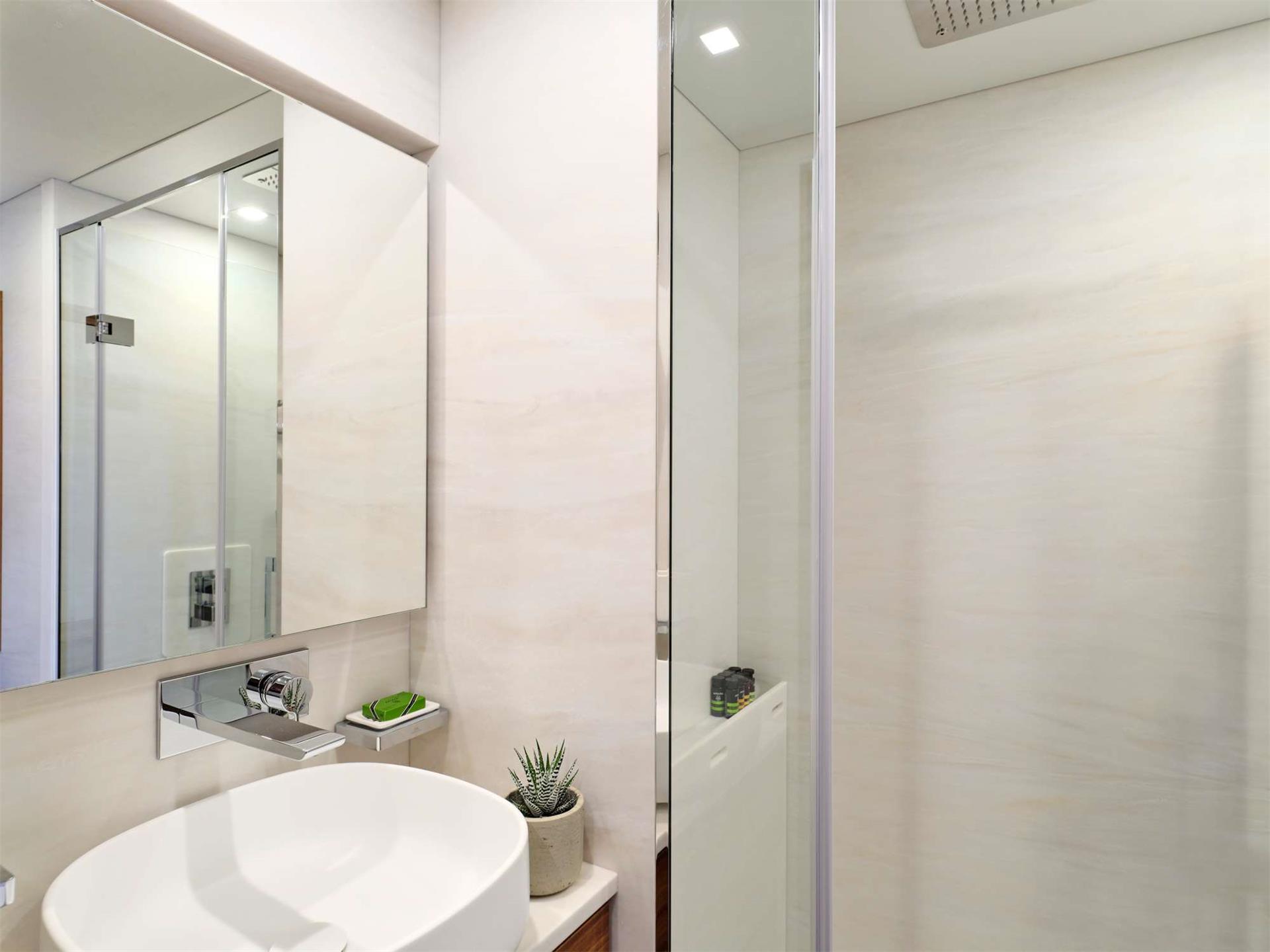 Inside, you'll find a strikingly modern and incredibly spacious interior that exudes comfort and luxury at every turn. The yacht boasts a total of five cabins, including a lavish owner's suite, and four queen-sized cabins, all of which come with their own private bathrooms and a galley down. This ensures that every guest on board enjoys the utmost privacy and convenience.