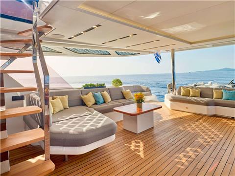 Outdoors, the flybridge and forward deck provide plenty of space for sunbathing and relaxation, allowing you to soak up the sun while enjoying breathtaking views of the ocean. The aft cockpit is perfect for socializing with friends and family, as well as indulging in alfresco dining experiences that will leave you craving more.