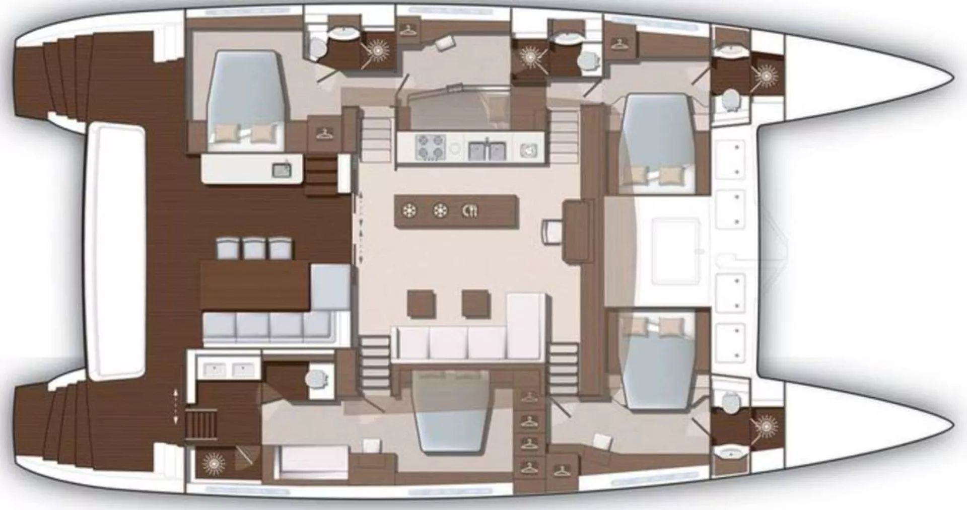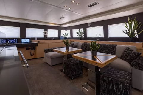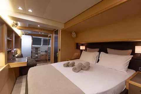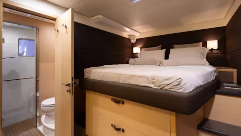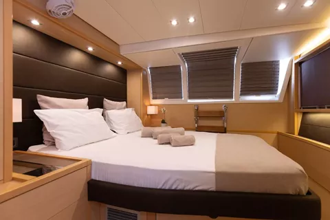 PEARLY GATES is a modern Lagoon 630 Power Catamaran built in 2016, which is offered with 3 crew members (Skipper, Hostess & Cook) for maximum 8 guests. This yacht combines the requirements of offshore cruising with the high standards of a luxury motor yacht. She provides a hardtop bimini with sunbed cushions on the flybridge. She has an elegant interior with spacious salon/dining area and a fully equipped kitchen and can accommodate up to 8 guests in 4 double en-suite cabins with queen size beds. Her 2 aft cabins offer easy access from the outside and provide more privacy. There is a wide variety of water toys available for the guests, including a Tender 4,60m with 60hp engine, water ski, wakeboard, 2 x SUP, towing tube, kayak, seabob, snorkeling equipment.