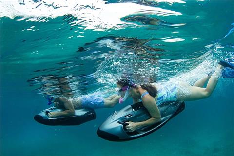 Water sports are a significant part of the BLESSED experience. The Yacht’s Toy Garage easily deploys into the water, providing effortless access to exciting adventures with the eFoil’s or SeaBobs! The hydraulic platform also lowers, getting you close to the Water’s Sky Blue Edge. Relax on a lounger or slip in for a snorkel. Or, enjoy a refreshing cocktail on the 10’ inflatable pool deck. Casual SCUBA diving is always an exciting option.