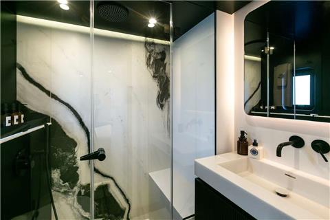Four of the guest cabins are accessed through the main salon. Each one has a European King Bed and are equally appointed with the finest, most comfortable bedding. The en-suite bathrooms boast the most elegant rain showers imaginable. The Fifth Guest Cabin is accessed from the port aft deck. It is appointed with a double bed and an en-suite bath with rain shower.