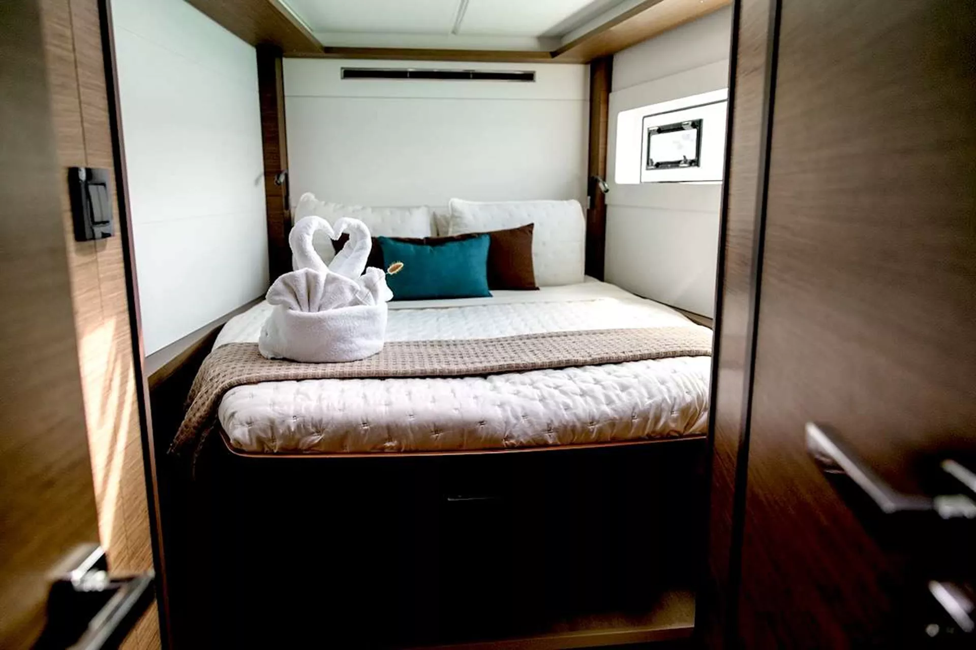 Spacious beyond her size, Starry Night features day beds, couches, bow beds, a flybridge, and