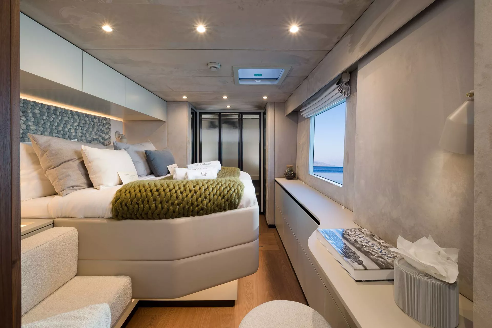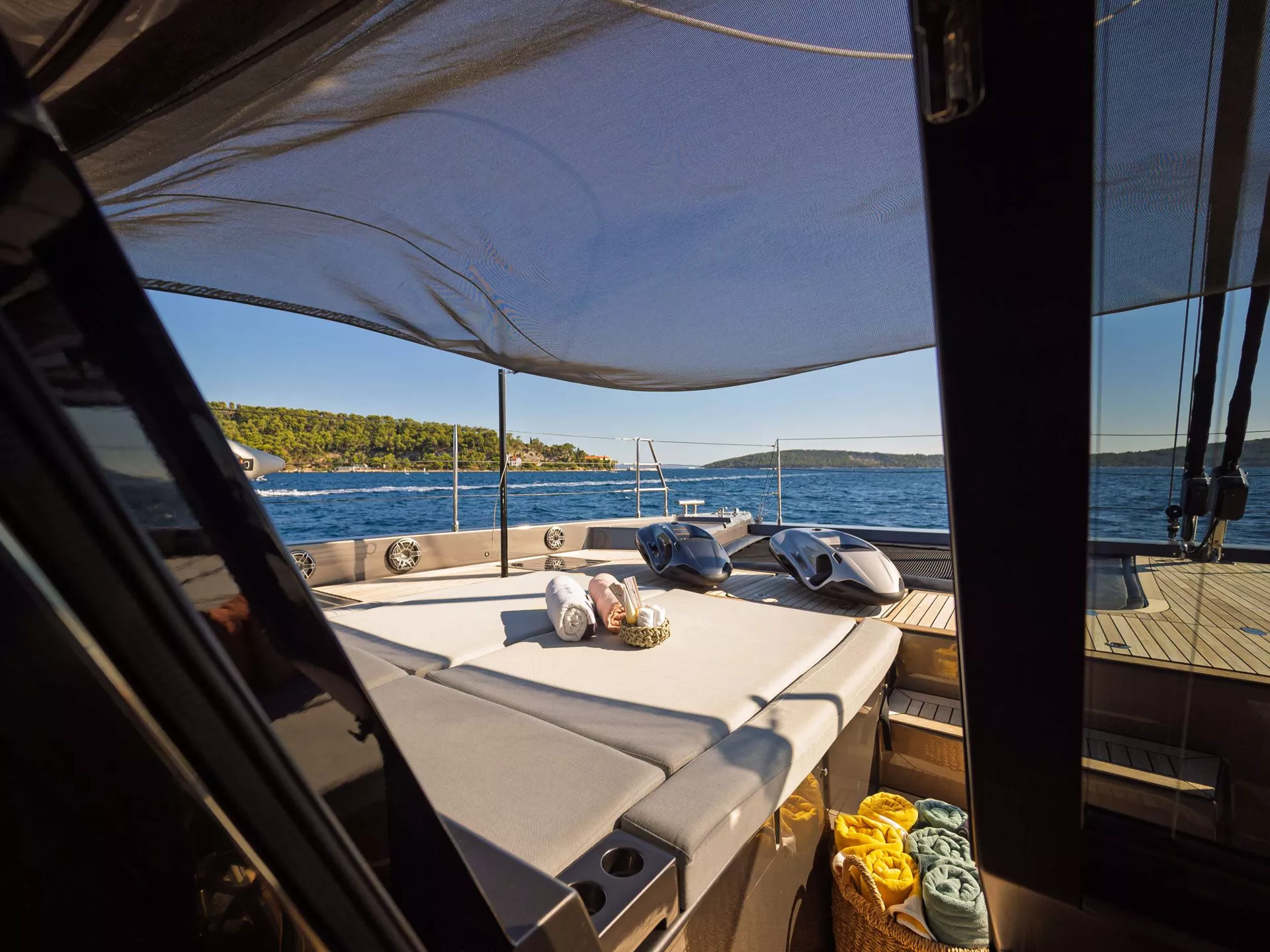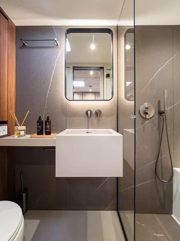 The Sunreef 60 AHALYA is designed with elegance and comfort in mind, accommodating up to 8 guests across 4 beautifully appointed double en‑suite cabins, each offering its own sanctuary of privacy and luxury. A dedicated crew of three (captain, chef & stewardess) resides in separate quarters, ensuring that you enjoy personalised, professional service while maintaining complete guest privacy.