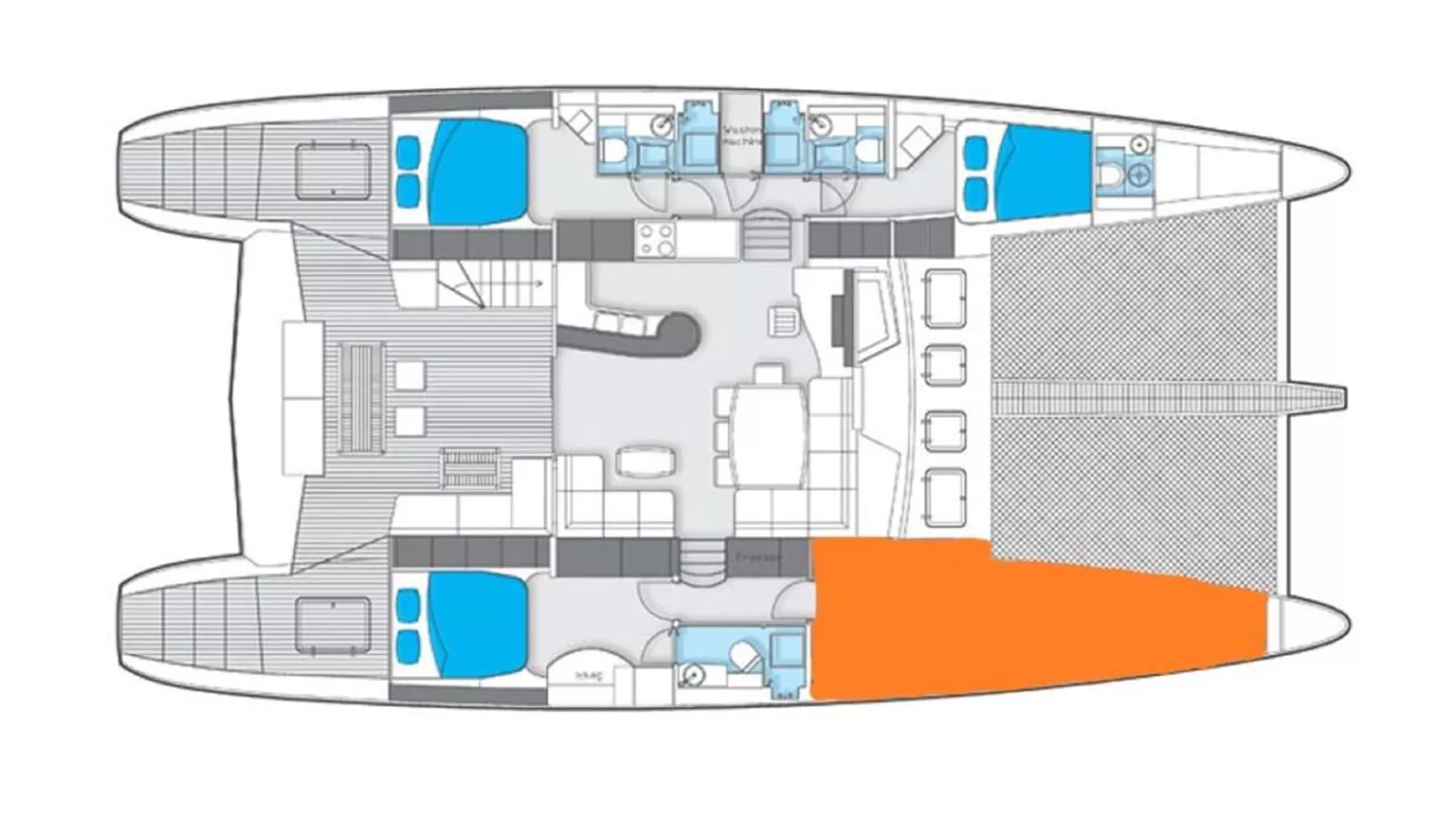 This SUNREEF catamaran is operated by a qualified crew of two: a Captain and a Cook/Hostess. They are passionately committed to their work, showing utmost respect to their guests, ensuring outstanding services.