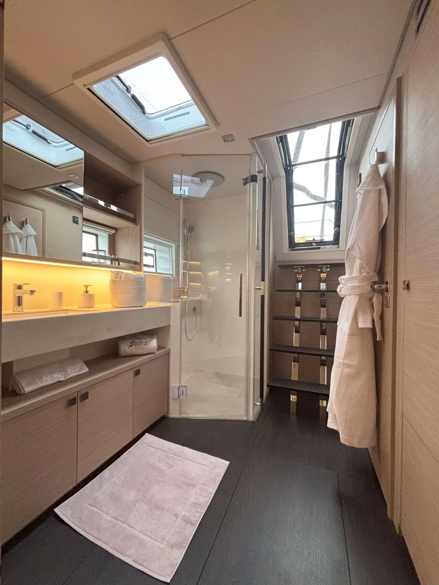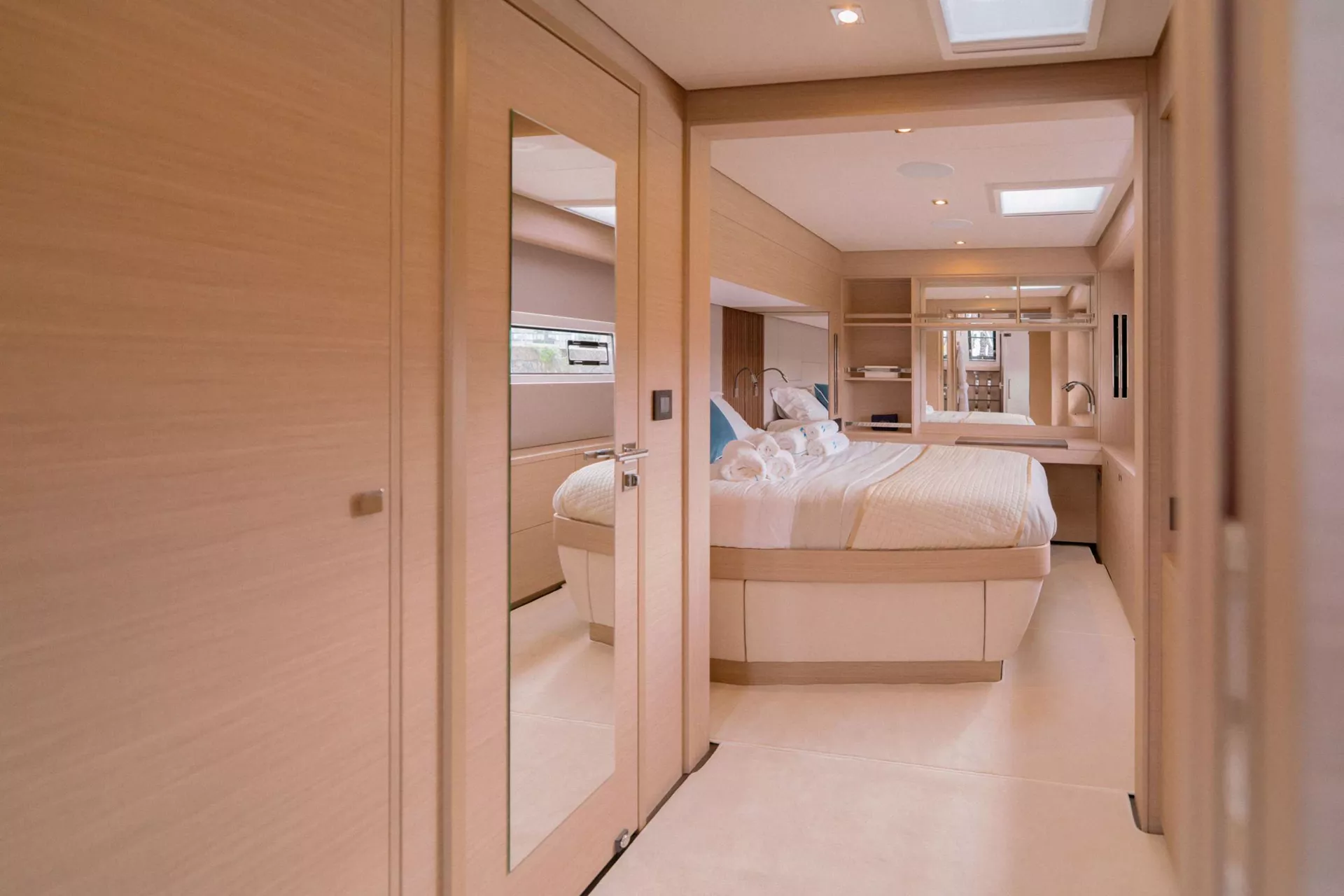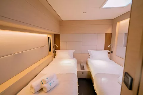 8 guests in 3 Double cabins and 1 Twin convertible to Double (sliding bed), all ensuite facilities.