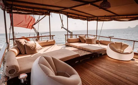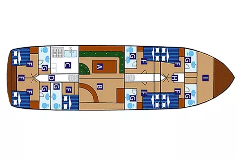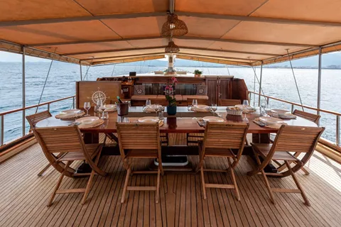 This amazing turkish gulet can accomodate up to 12 guests in 6 double beds cabins with private toilet.
