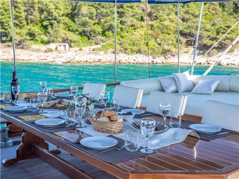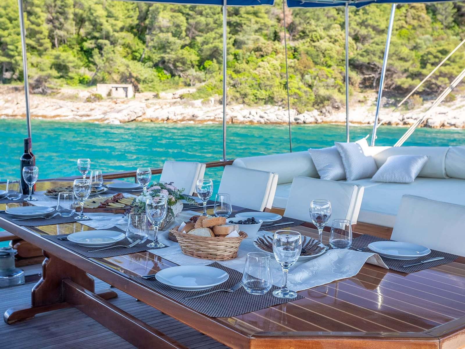 - ALL-INCLUSIVE PREMIUM ALCOHOLIC DRINKS: 350 €/person/week (tea, coffee, fresh orange juice, all kinds of 100% fruit juices, carbonated juices, water, mineral water, Jameson, Jack Daniels, Absolut vodka, Hendricks Gin, Havana rum, Martell cognac, Don Julio tequila, Monin syrups, High-quality Croatian wines - Grk, Plavac Mali, Zinfandel, Cabernet Sauvignon, Posip, Zlatarica, Sparkling wines)