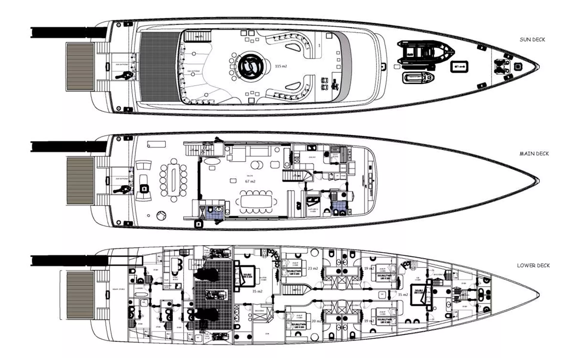 Adri has fantastic deck spaces with an onboard setup and all the luxurious lifestyle amenities to suit everyone. With ample relaxing areas, it is easy to find the perfect spot to be alone or socialize with your party.