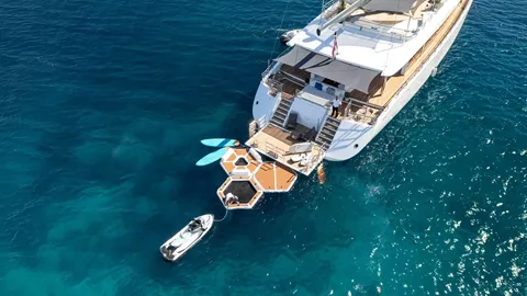 M/S Adri is all about making the best of the Adriatic. Her 18-square-meter hydraulic platform doubles as a private beach so that you can enjoy an entirely private sunbathing experience or a massage to the tune of waves. Action abounds with water toys galore, from speedy two 2-seter Sea-doo GTI 130hp jet skis and water skis for all ages to 2 x Sea bobs F 5S, SUPs, fishing rods, tubes, a mini sea golf.