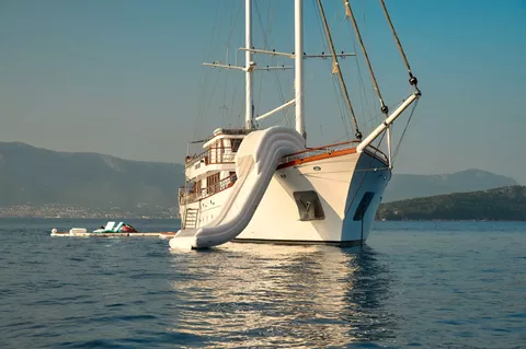 CORSARIO comes with an impressive selection of water toys, something for everyone: two stand-up paddleboards, kayaks, jetski, seabed, water-skiing gear, snorkelling equipment, fishing rods, sun mattresses and floating mats for all kinds of fun.