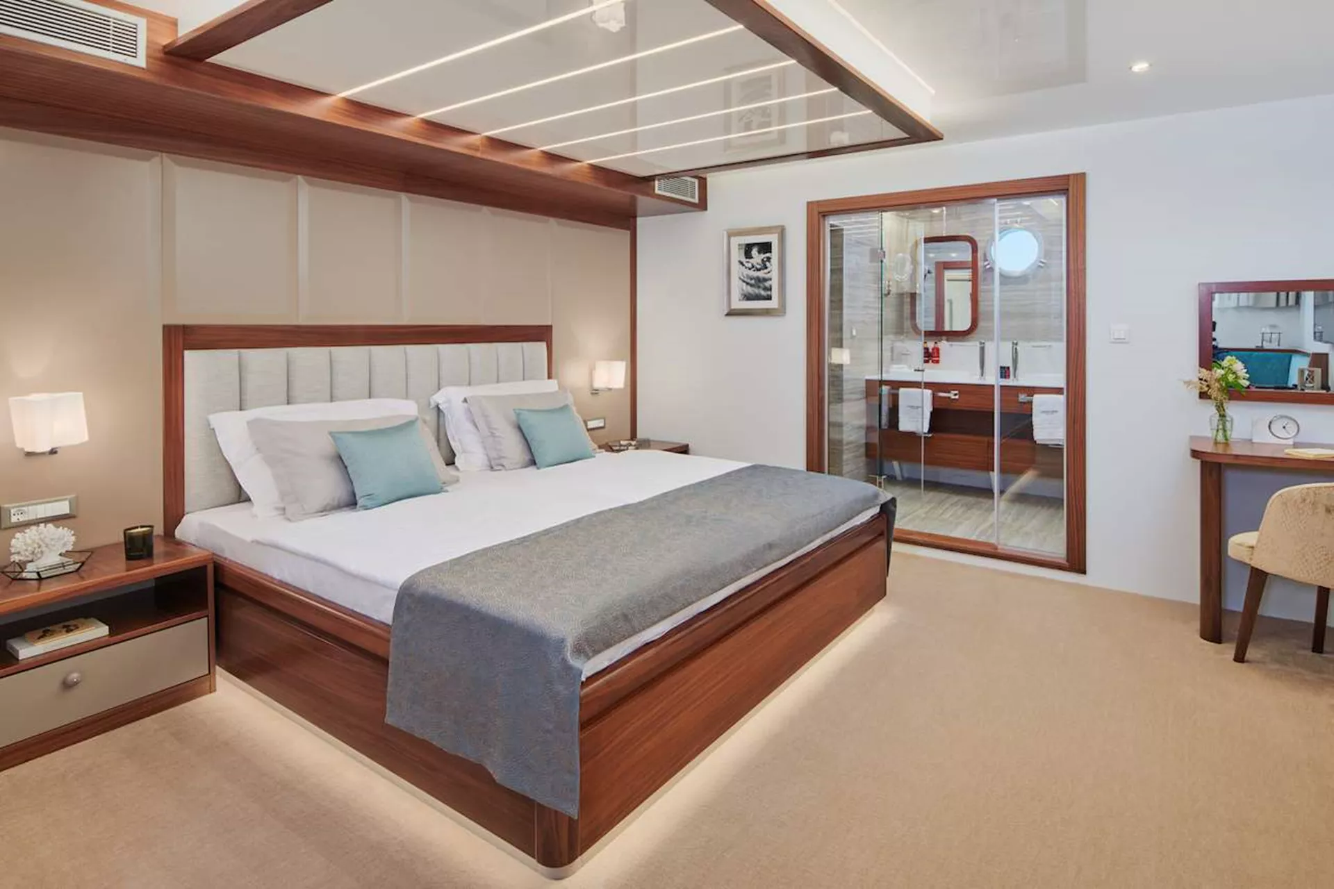 1 Master stateroom 32 m2, with King size double bed (200*205 cm). En suite bathroom comes with underfloor heating.