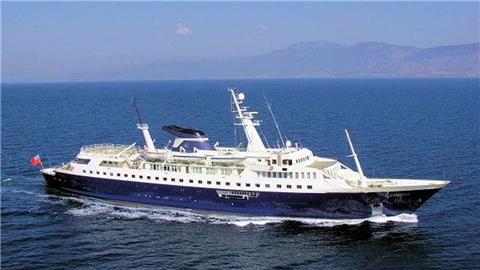 Alexander is a fabulous mega-yacht/ship of 488 feet in length for charter that accommodates up to 74 passengers. She has a master suite with accommodations for two in a suite that consists of a bedroom, bath, separate Jacuzzi, salon and dressing room. There are 14 two bedroom (one with double and one with twin beds), separate bathroom and a connecting salon for each suite. Another eight staterooms with bath en suite and one single cabin making the remaining cabins. This ultra luxurious ship has a main dining salon that accomodates all passengers at one seating, a lovely outdoor veranda salon, a "Gazebo" reception area, a hospital, a gymnasium, a music room, a heliport and a pool deck with pool and Jacuzzi. The Alexander offers the utmost in small yacht/ship cruising as Mega Yacht. Recreation Equipment Full-size discotheque and bar with state of the art sound system, Outdoor swimming pool and Jacuzzi, Children playroom with television and video game systems