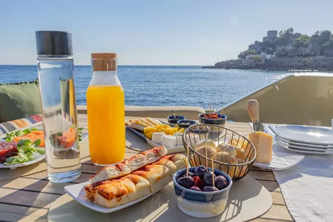 Rental of the boat, services of the Captain, stewardess/cook, use of on-board leisure equipment