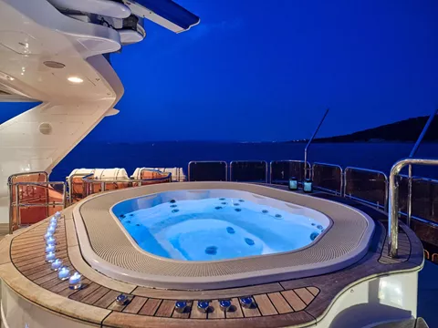 A full beam VIP cabin on the Upper Deck, like a second Master, with a queen-sized bed, a walking closet and en-suite facilities with sauna.