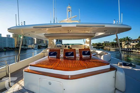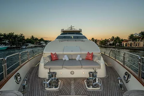 Experience the breathtaking views of Florida, the Bahamas, and New England from the numerous outdoor living spaces onboard. Take a stroll on the full walk-around deck with its high bow and relax on the upper and lower sun pads. The aft deck is perfect for entertaining, featuring a wet bar and casual dining area that can seat up to 12 guests.