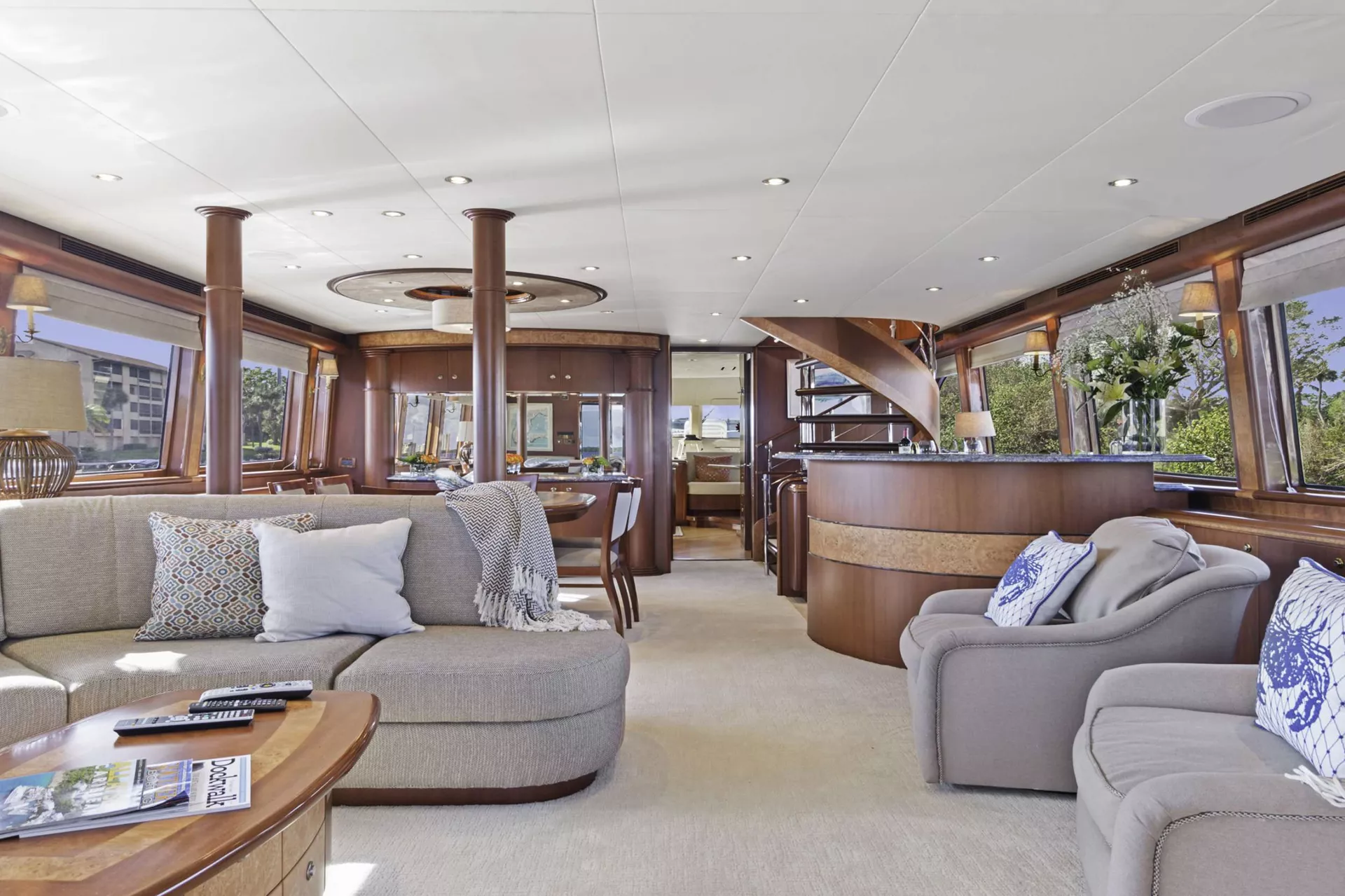 WINDWARD is a well-appointed 3 stateroom motor yacht with fantastic space inside and out. Her expansive aft deck is perfect for al fresco dining. She also features a generous sundeck with a sizzling barbeque for those sunny summer days. She offers three plush bunny pads on the bow, allowing for panoramic ocean views. She boasts a full-beam owner's stateroom with a King Size bed, double en suite bath, and storage. Guest suites include one Queen and one Twin stateroom. Her large salon and dining area feature a full wet bar to prepare those pre-dinner cocktails. Whilst her experienced Captain and excellent crew will ensure that you have a trip to remember.