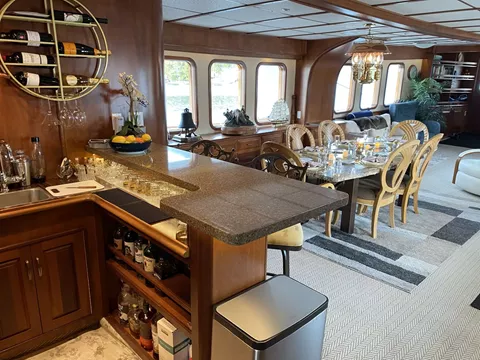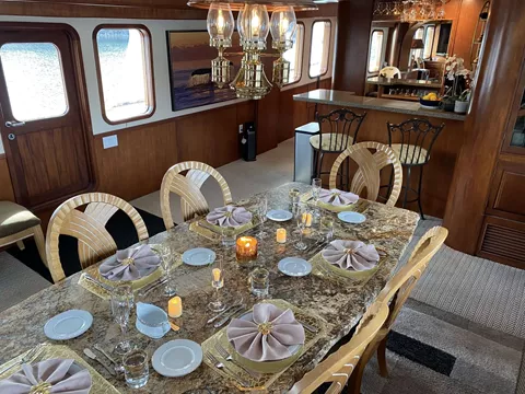 This is a luxury expedition charter vessel like no other. Spacious king size walk around staterooms with luxury cotton linens and ensuite heads with stand-up showers is an eyebrow raiser to say the least. No one stateroom outshines the other and are fairly equal. A two-person elevator is available for guests whom have limited mobility. There is no off-limit area for guests who have limited mobilities. Ceiling height is 7’ throughout and the interior is immaculately adorned with mahogany woodwork and high-end furnishings. Relax and allow your crew to take care of you