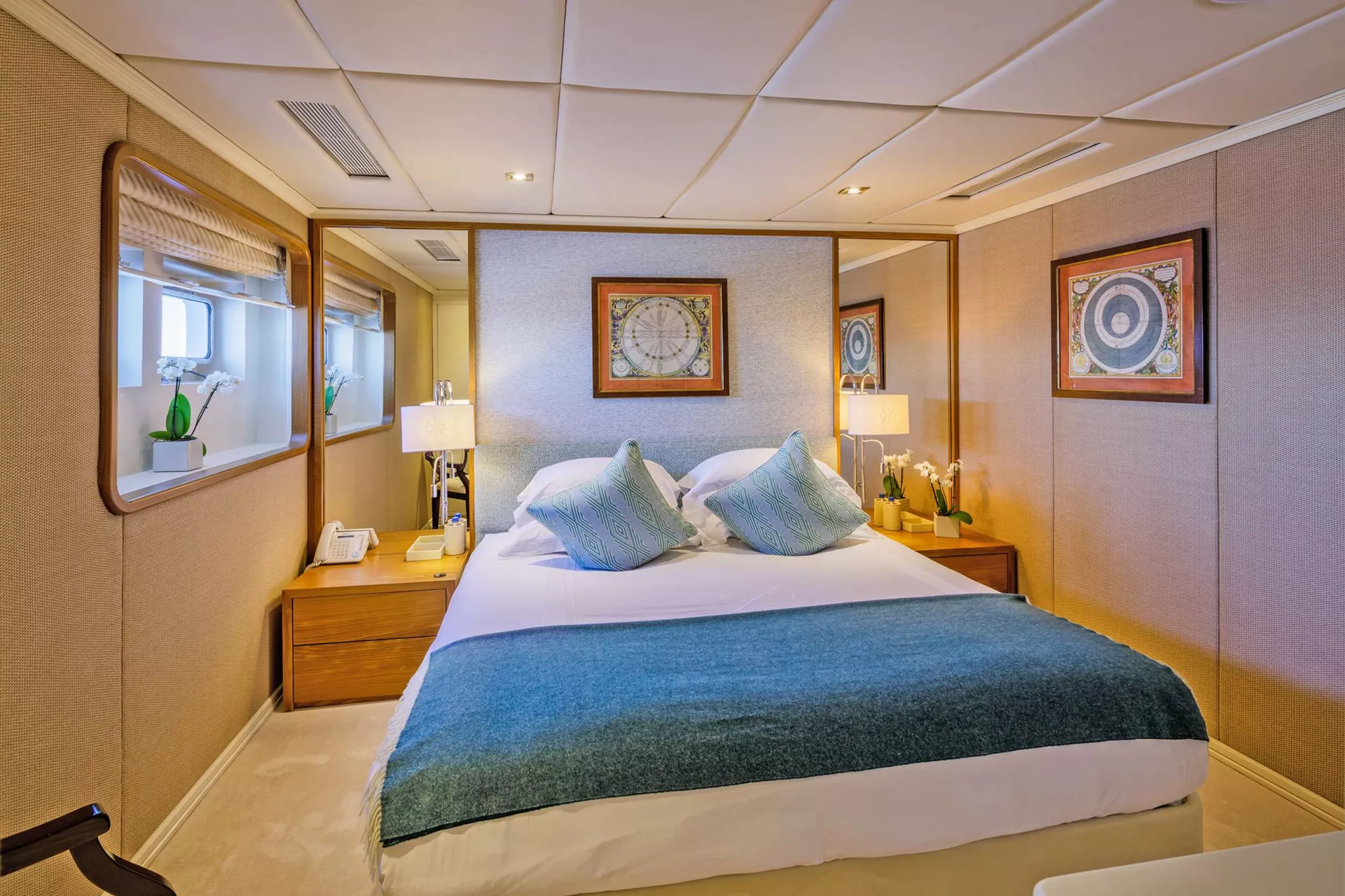 Four Double cabins - two of them with king size bed (1.80m*2.00m) and the other two with queen size bed (1.60m*2.00m)