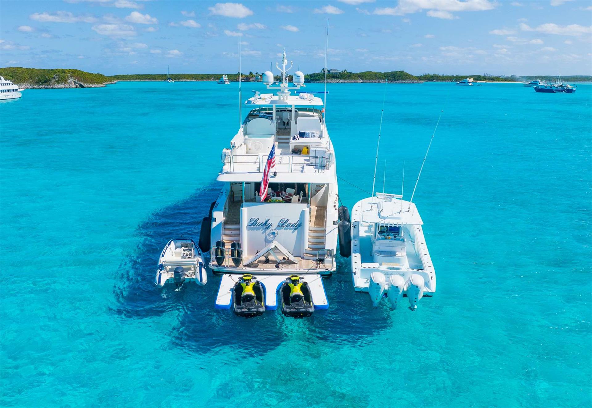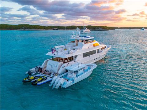 LUCKY LADY is the newest 112' Westport on the charter market and truly the most customized ever built. She offers both quality and a unique design throughout, including the complements of beautiful light fabrics and rich mahogany woods, a one-of-a-kind custom “Chef’s Galley,” a twin forward cabin, and the only 112’ with a day head and shower on the flybridge. This program also boasts a 39' Yellowfin tender and large toy selection for fun under the water and on top!