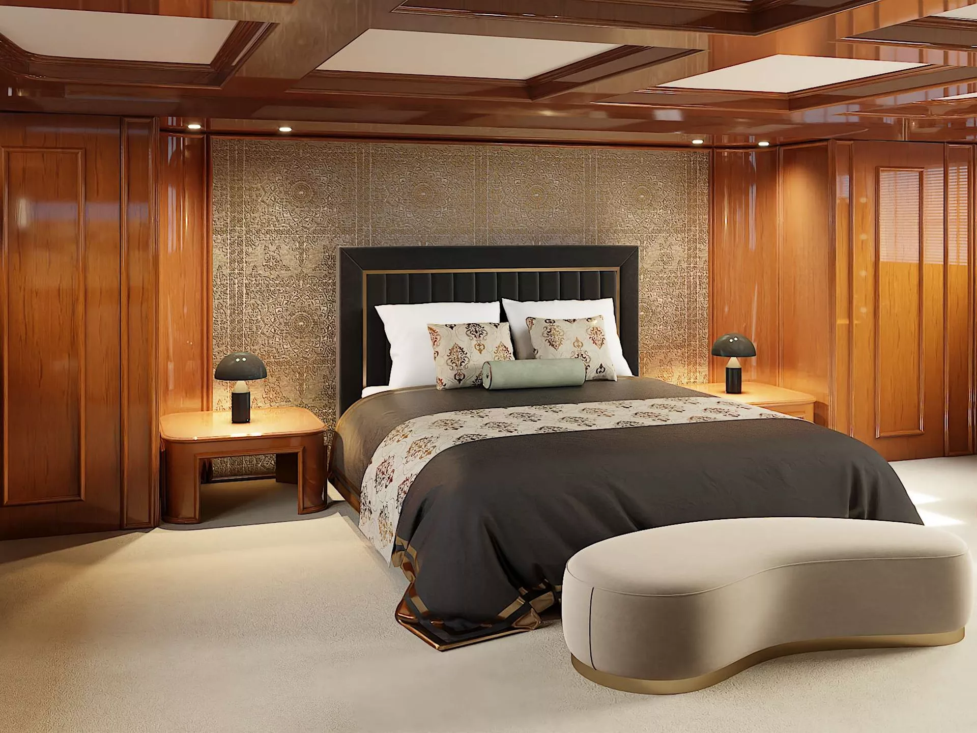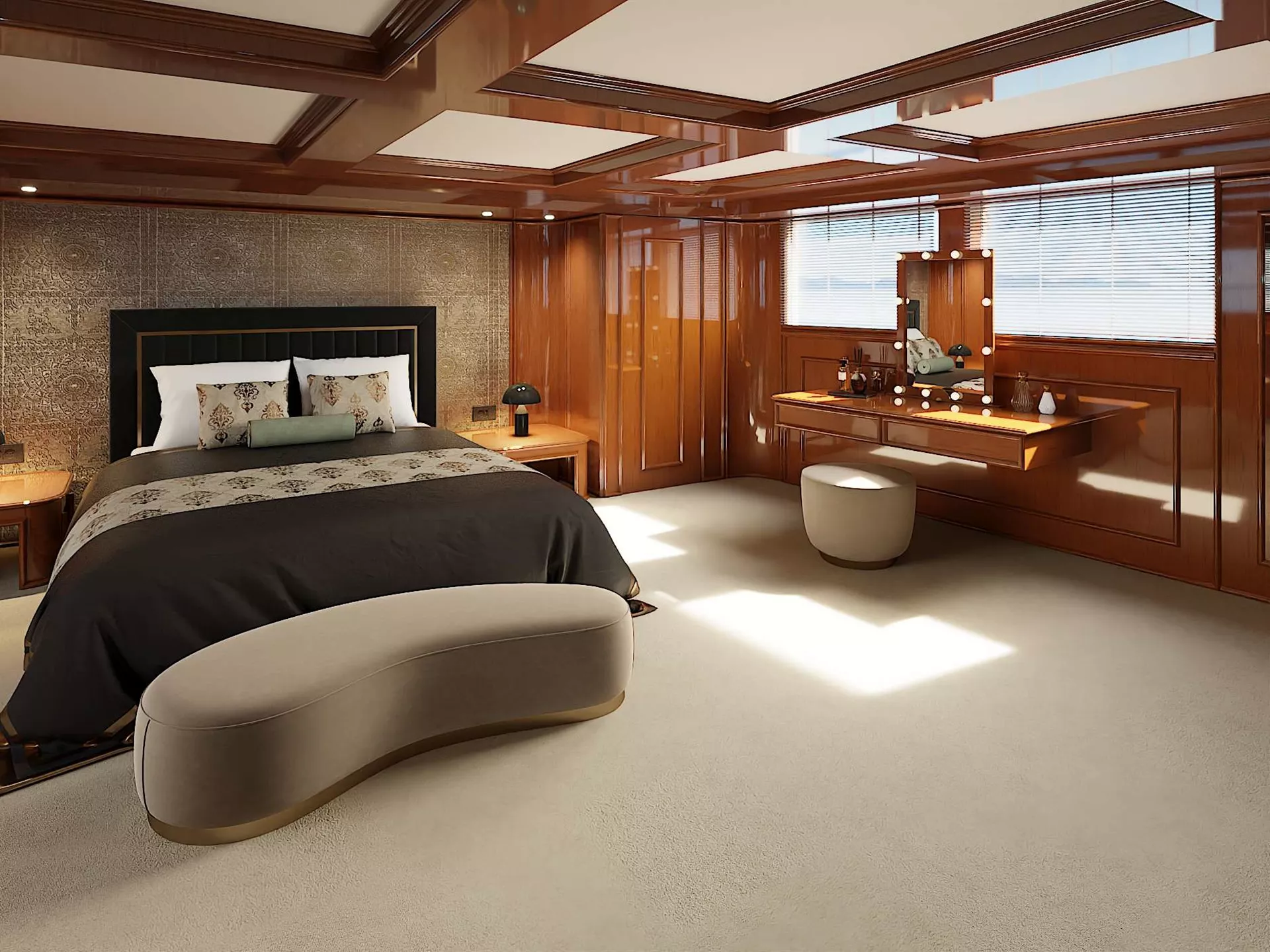 She boasts a full size Master Suite, including walk in dressing room and Office, plus His & Hers Bathrooms. One VIP Cabin is located on the Bridge Deck, with four cabins below, 2 x Double and 2 x Twin (with one Pullman in each of the Twins)