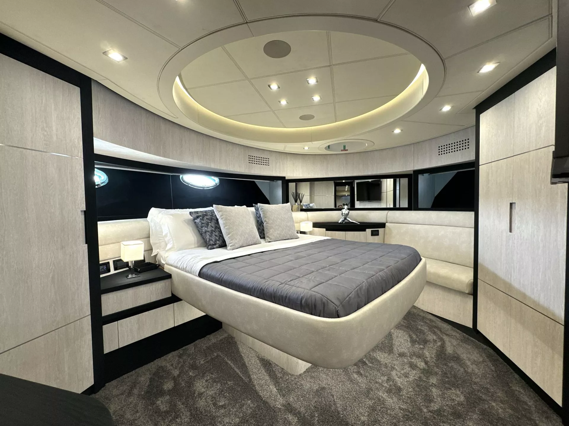 The yacht has four cabins in the lower deck:
