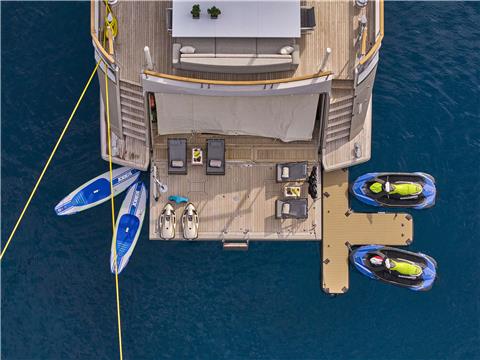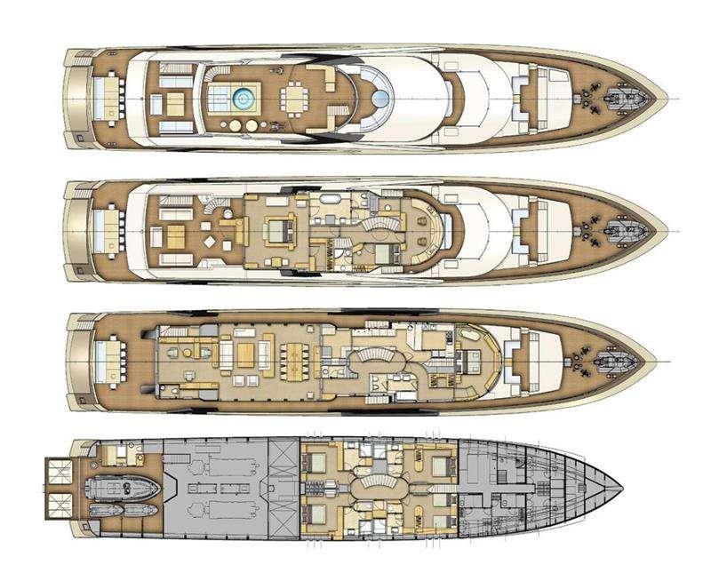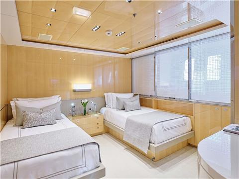 VIP CABIN On the main deck forward the VIP cabin offers panoramic view thanks to the semi-circular window design. There is also a private terrace adjacent to the cabin on the foredeck.