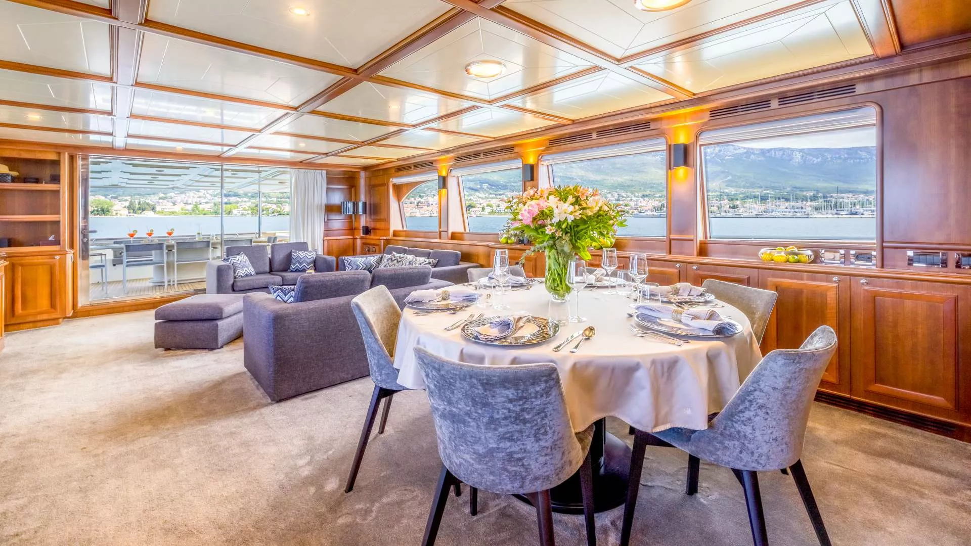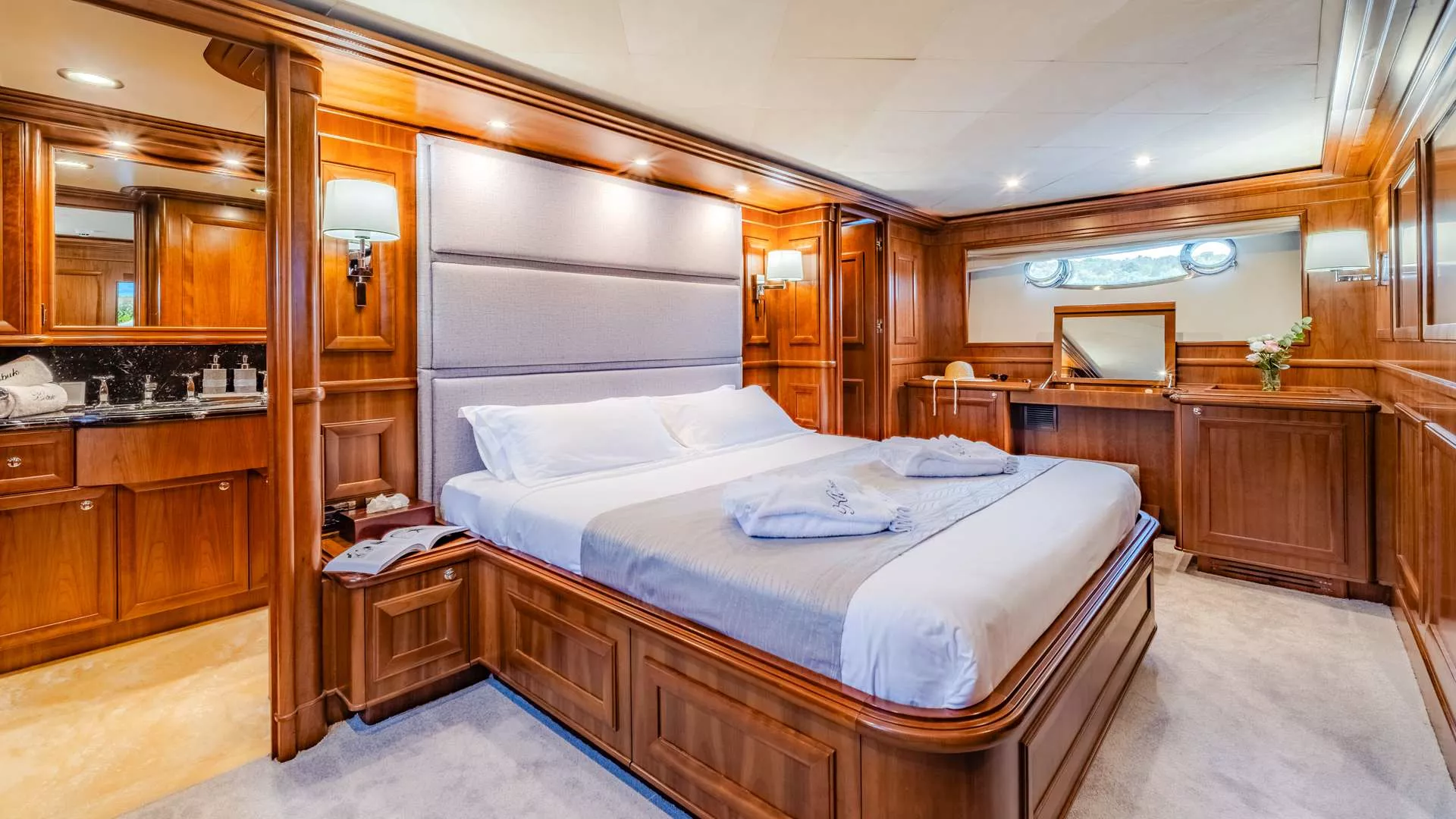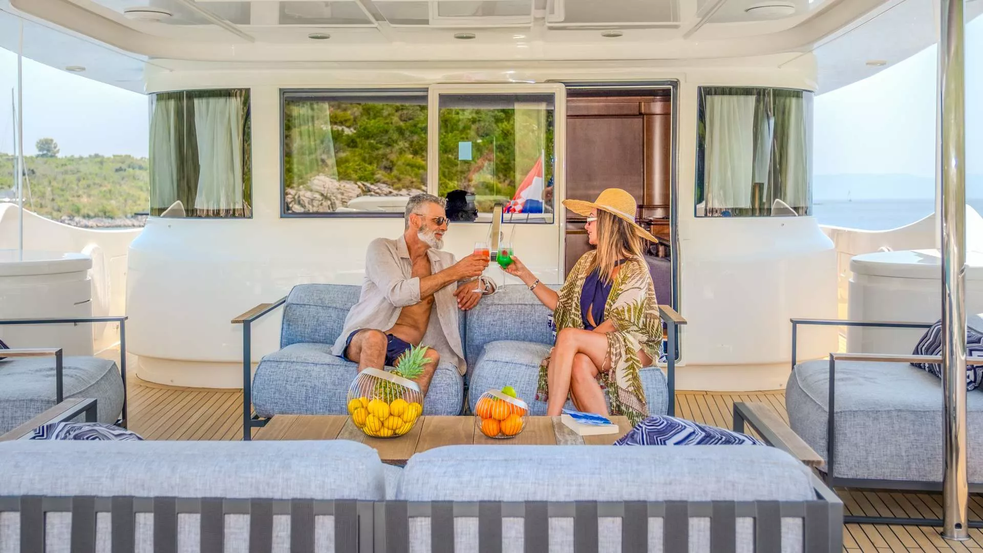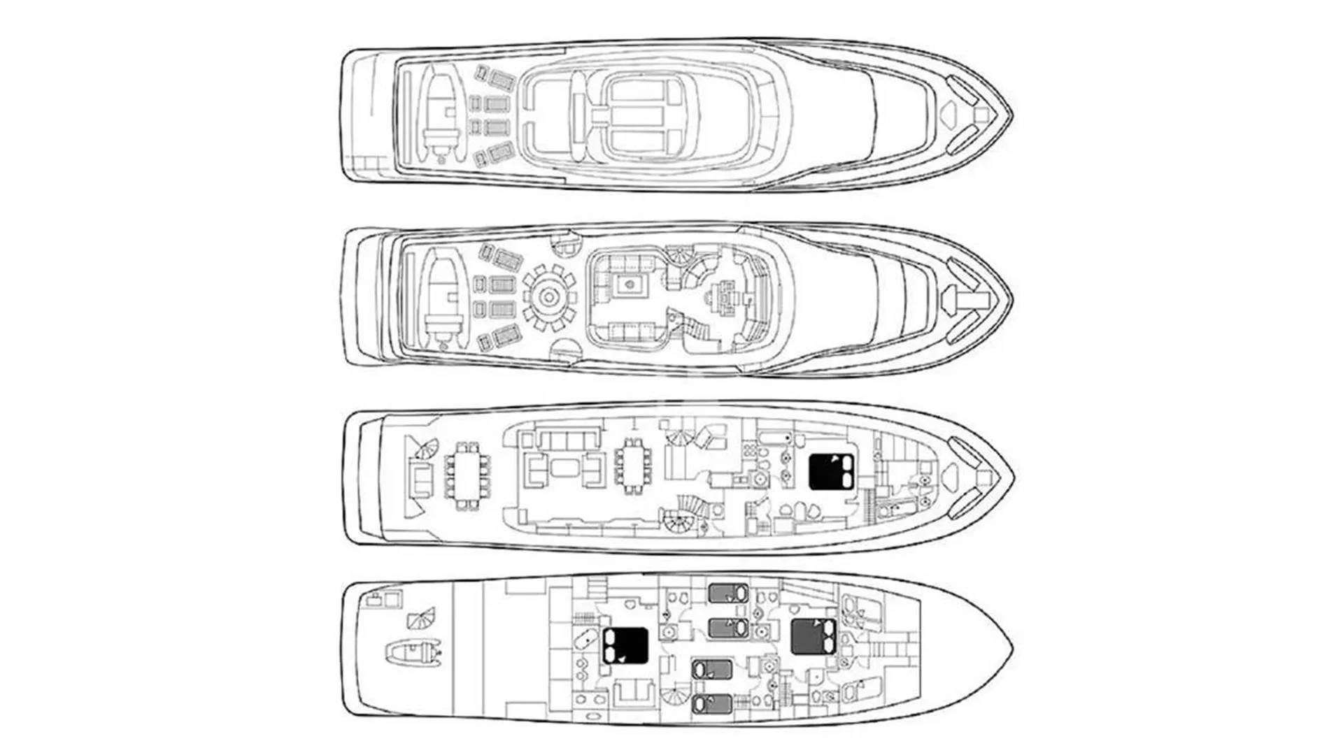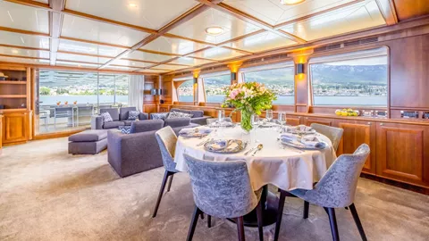 Klobuk features a Master cabin on the main deck forward area. The lower deck comfortably accommodates additional Guests in 4 cabins, including a VIP, Guest cabin and 2 Convertible cabins with 2 pullman beds.