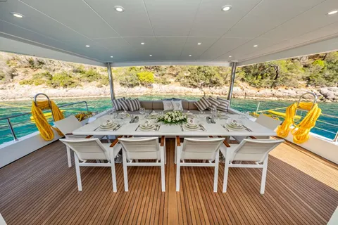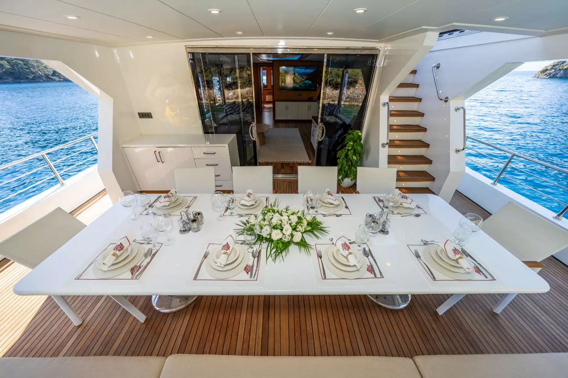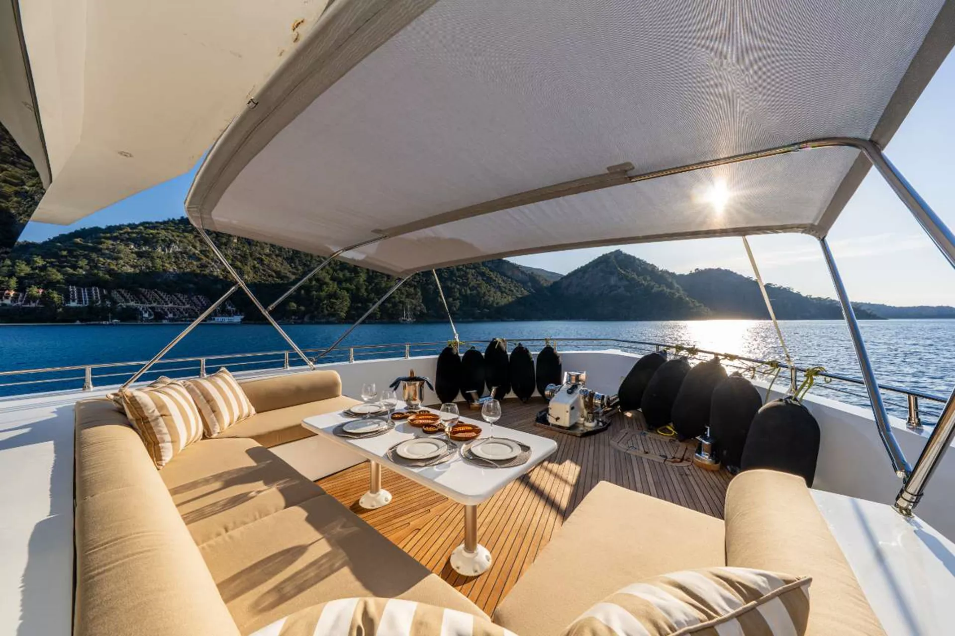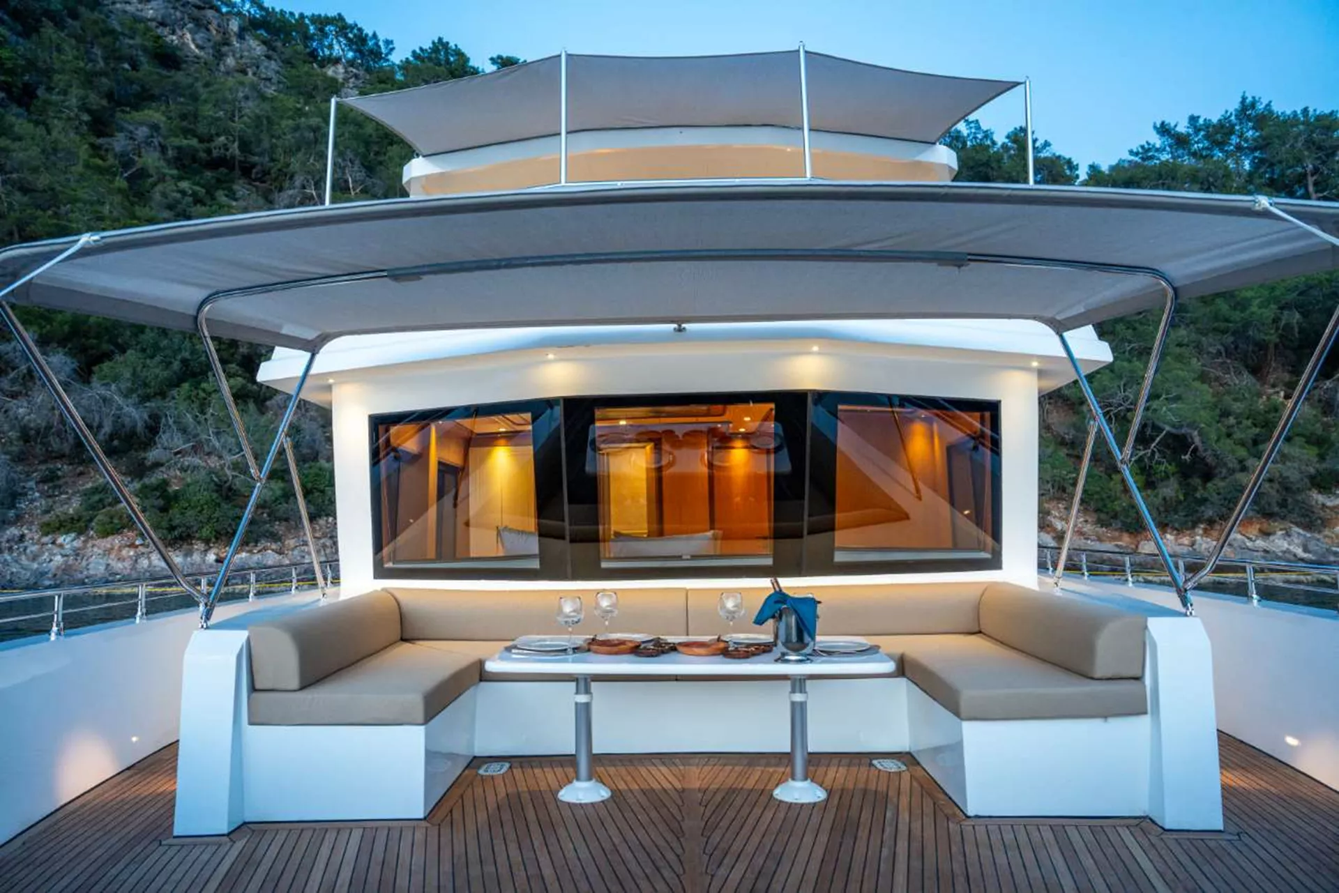 For the provisioning and All Inclusive Services, our standard very rich services costs € 735 pp /week including twice sea food dinners, or upgrade option at € 795 pp week, which includes Luxury Full Board with minimum 3 seafood dinners, one of which with lobsters, total of 6 dinners onboard and guests take one dinner ashore where they wish, freshly squeezed orange juice and fresh coffee with breakfasts, sun downer snacks, afternoon tea and coffee and homemade cakes, standard soft drinks all day, complimentary 6 bottle case of good quality local wine, both options include private airport transfers in Turkey.