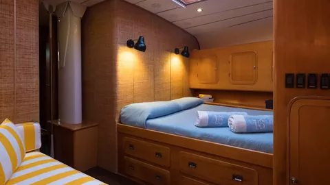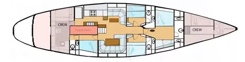 It is possible to have also a 4th cabin, situated in the rear part of the vessel, close to the crew's area: it is a single cabin, but with a comfortable bed (double French size) wich could accommodate 2 young's (with own bathroom).