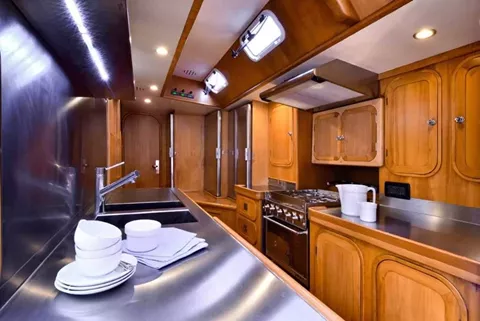 Very bright and well refurbished saloon, separated galley. Crew's quarter with indipendent access from cockpit