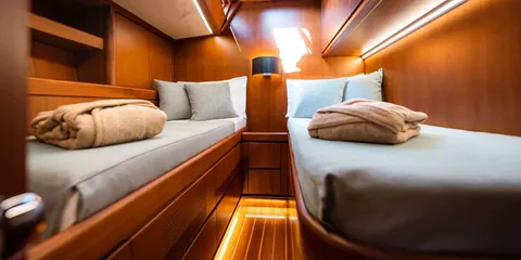 - 2 triple cabins : each with upper and lower beds and with with a single bed as well.