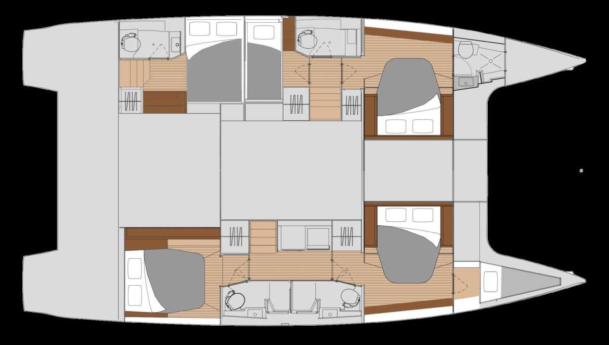 Heads: 3 dry heads, 1 Wet head (located in the stern-port cabin)